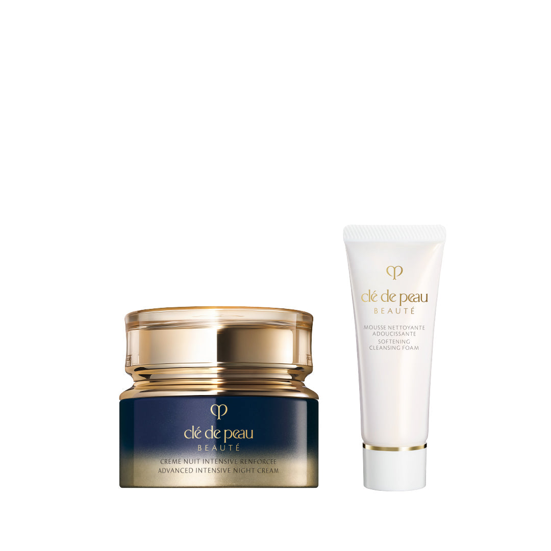 輝き続ける肌のために。日中に乾燥などの環境ダメージを受けた肌を優しくケアする夜用のクリームと、しっとりとした肌に洗い上げる洗顔の特製サイズのキット