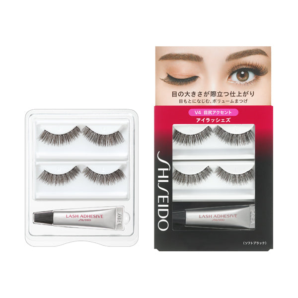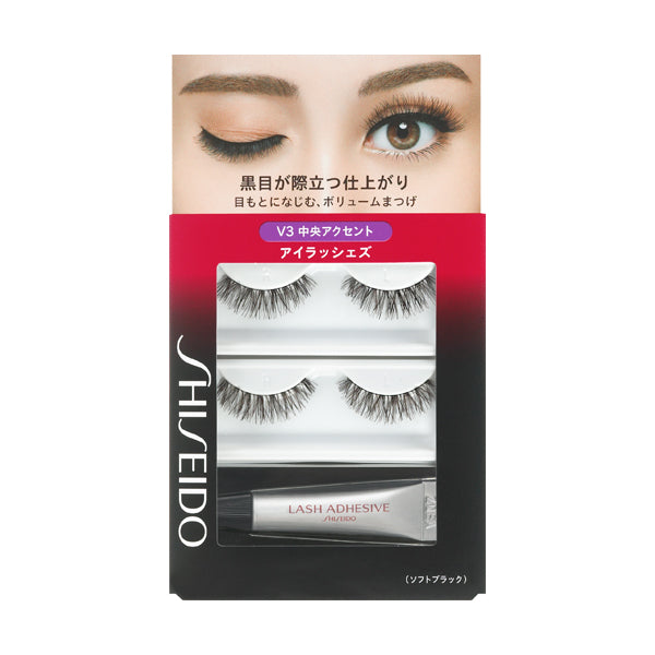 ●アイメークの一番最後(マスカラをつけた後)に使います。 1.台糸(根もとの糸)の端をもって静かにケースの台座からとりはずします。 2.付属の資生堂つけまつ毛用接着剤Fを台糸(根もとの糸)にうすく均一につけます。 3.伏し目にし、まつ毛の生えぎわのアイラインの位置に沿ってまぶたに軽く押しつけるようにしてつけます。(中央→目頭→目尻の順番につけるとキレイに仕上がります。)