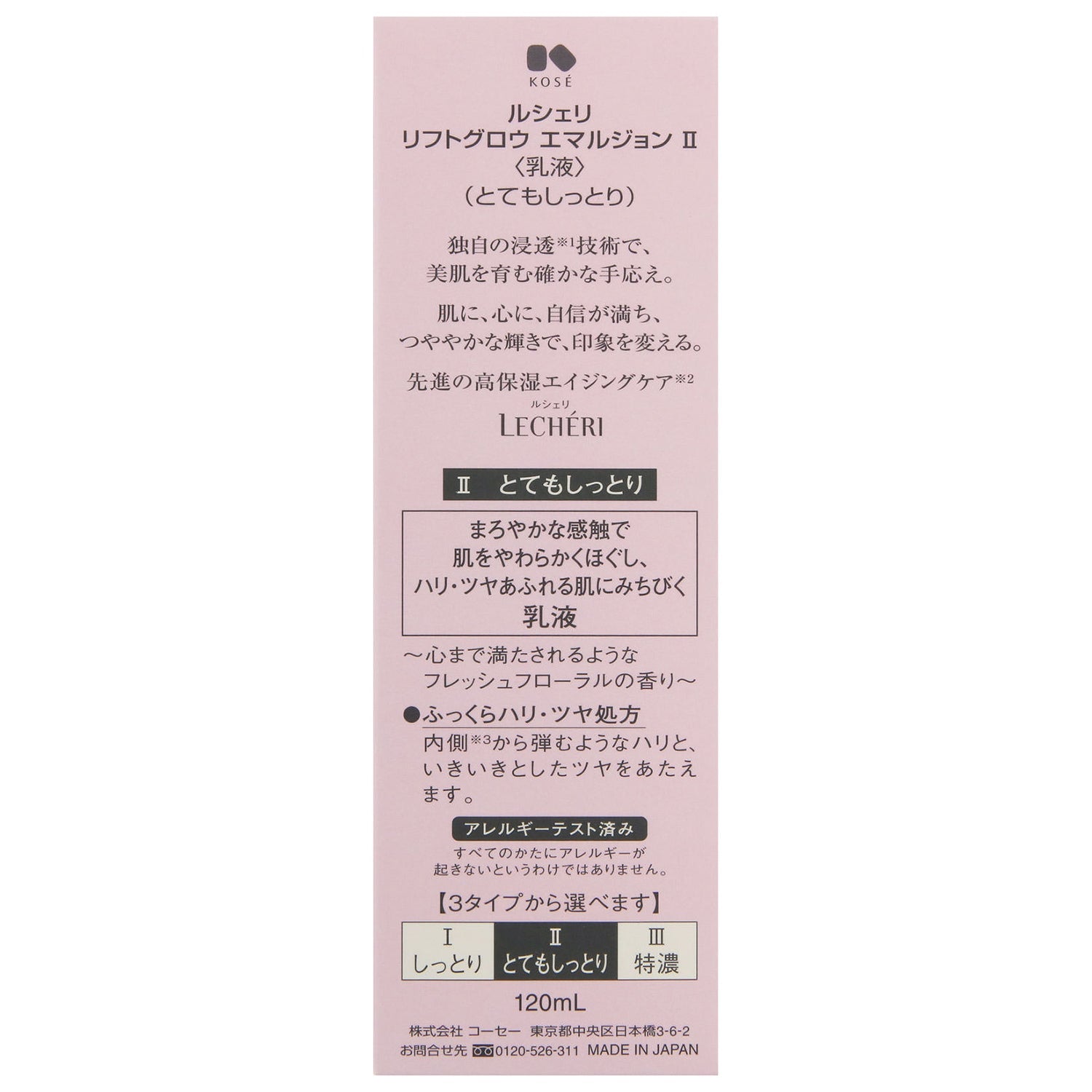 ルシェリ リフトグロウ エマルジョン 2 (乳液) (とてもしっとり) 120mL : ふっくら立体的なハリ、ツヤ肌へ。