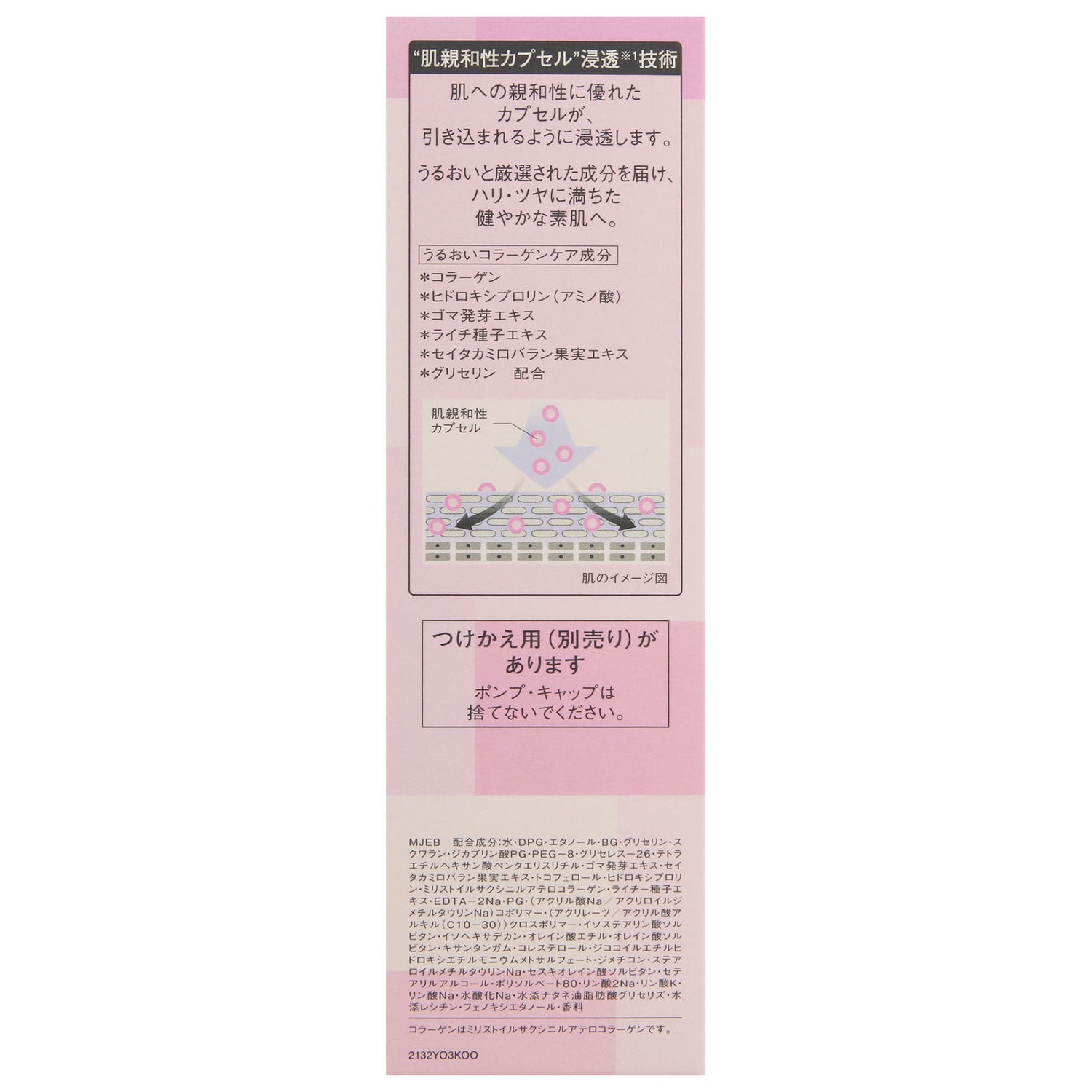 うるおいコラーゲンケア成分 : コラーゲン、ヒドロキシプロリン (アミノ酸) 、ゴマ発芽エキス、ライチ種子エキス、セイタカミロバラン果実エキス、グリセリン配合。
