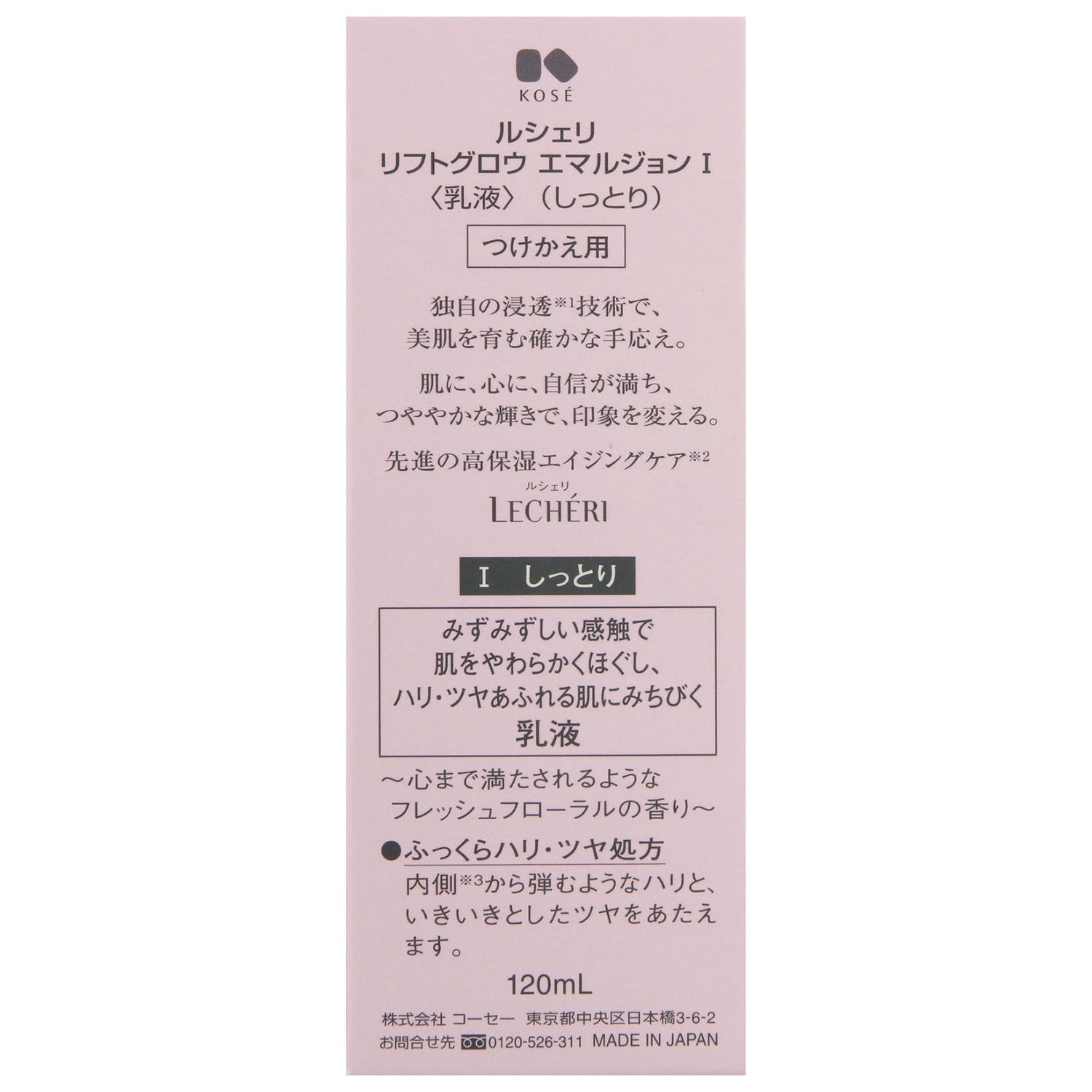 ルシェリ リフトグロウ エマルジョン 1 (つけかえ用) (乳液) (しっとり) 120mL : ふっくら立体的なハリ、ツヤ肌へ。