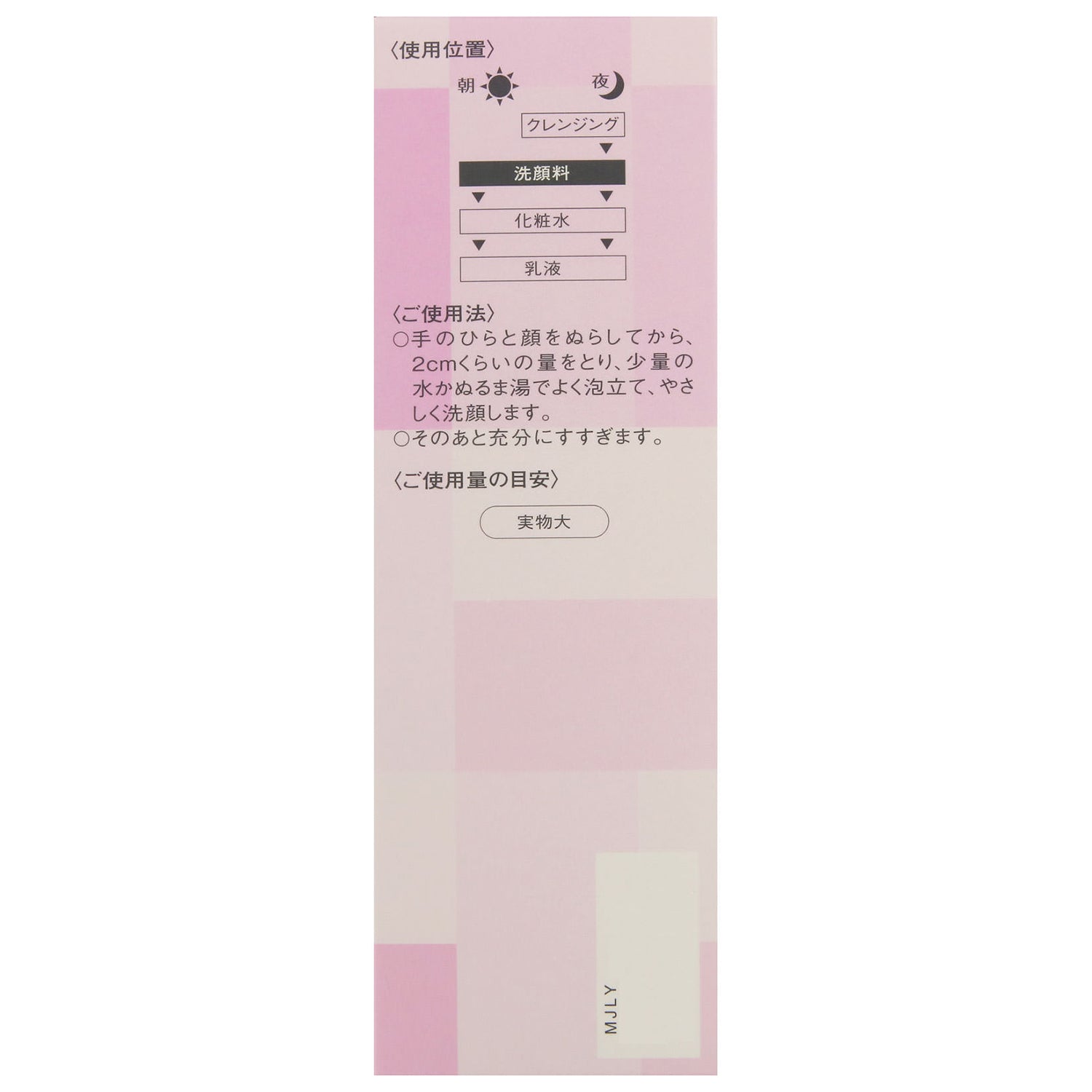 手のひらと顔をぬらしてから、2cmくらいの量をとり、少量の水かぬるま湯でよく泡立て、やさしく洗顔します。