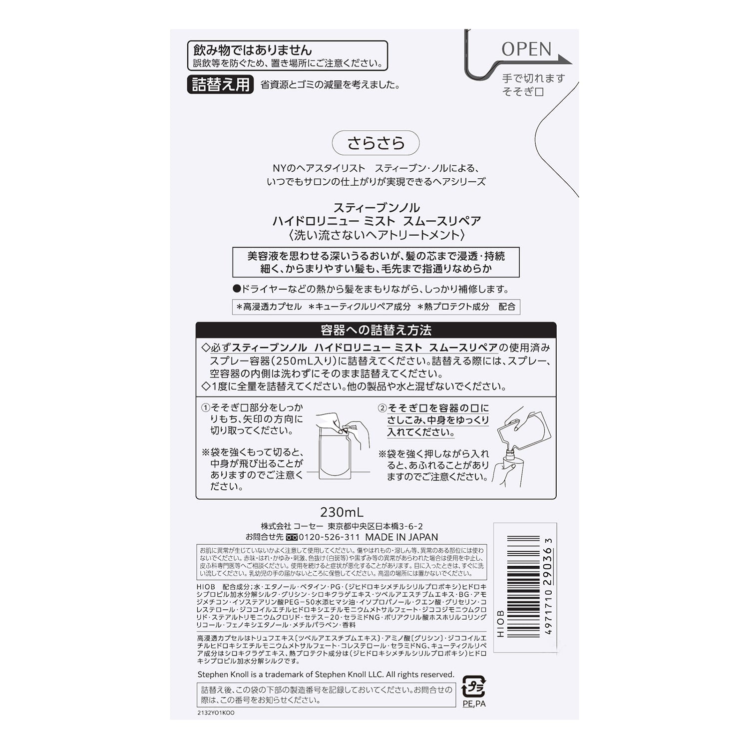 必ずスティーブンノル ハイドロリニュー ミスト スムースリペアの使用済みスプレー容器 (250mL入り) に詰替えてください。