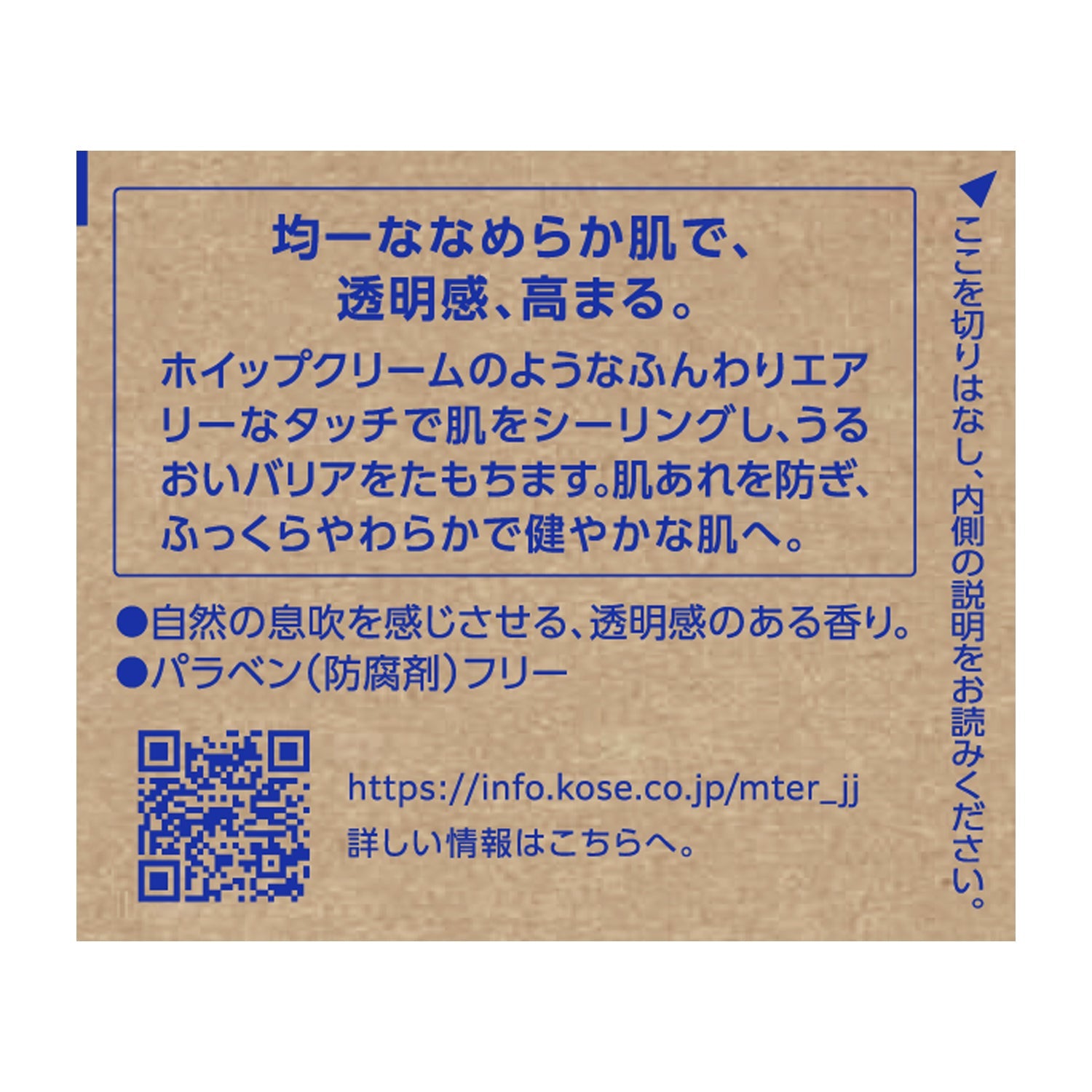 ホイップクリームのようなふんわりエアリーなタッチで肌をシーリングし、うるおいバリアをたもちます。