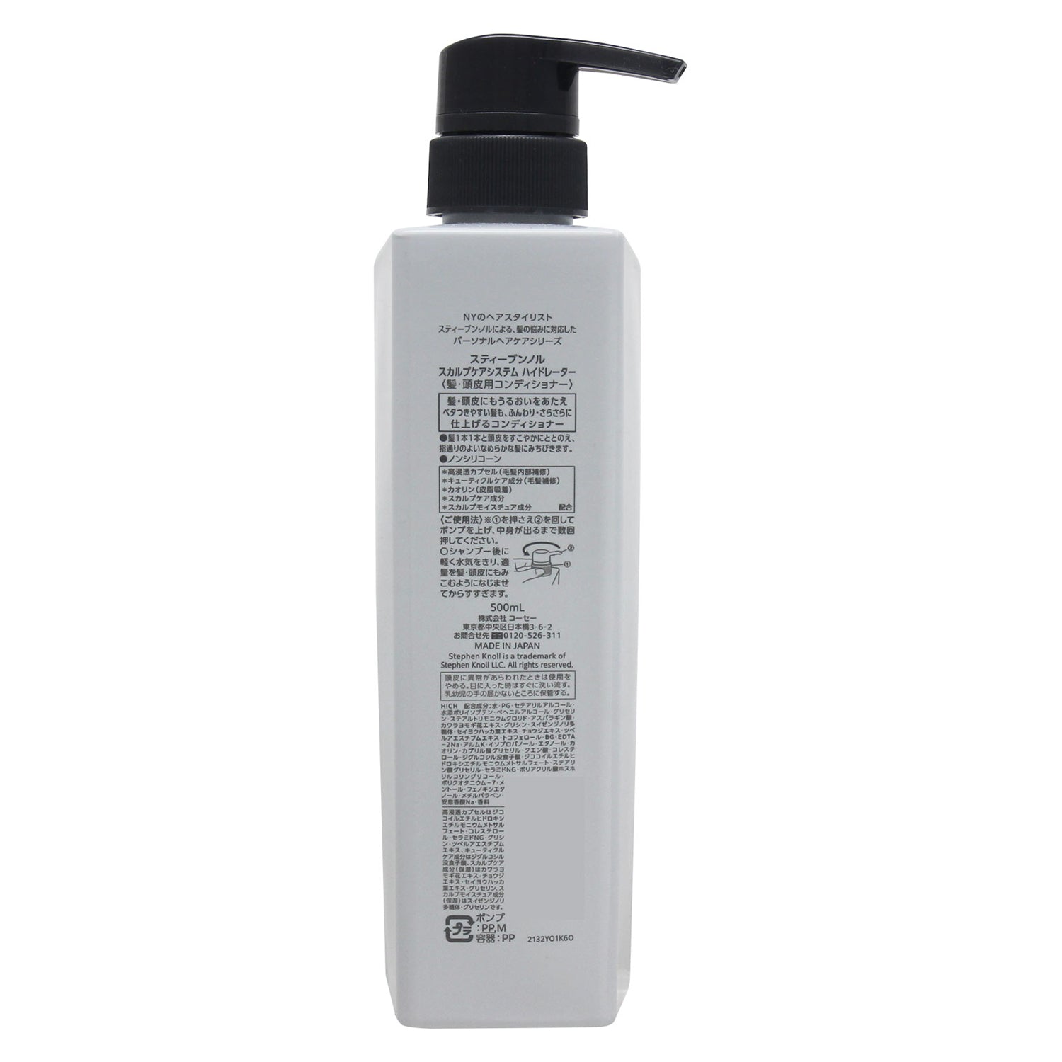 スティーブンノル スカルプケアシステム ハイドレーター (髪・頭皮用コンディショナー) 500mL : 髪・頭皮にもうるおいをあたえ、ベタつきやすい髪も、ふんわり・さらさらに仕上げるコンディショナー。