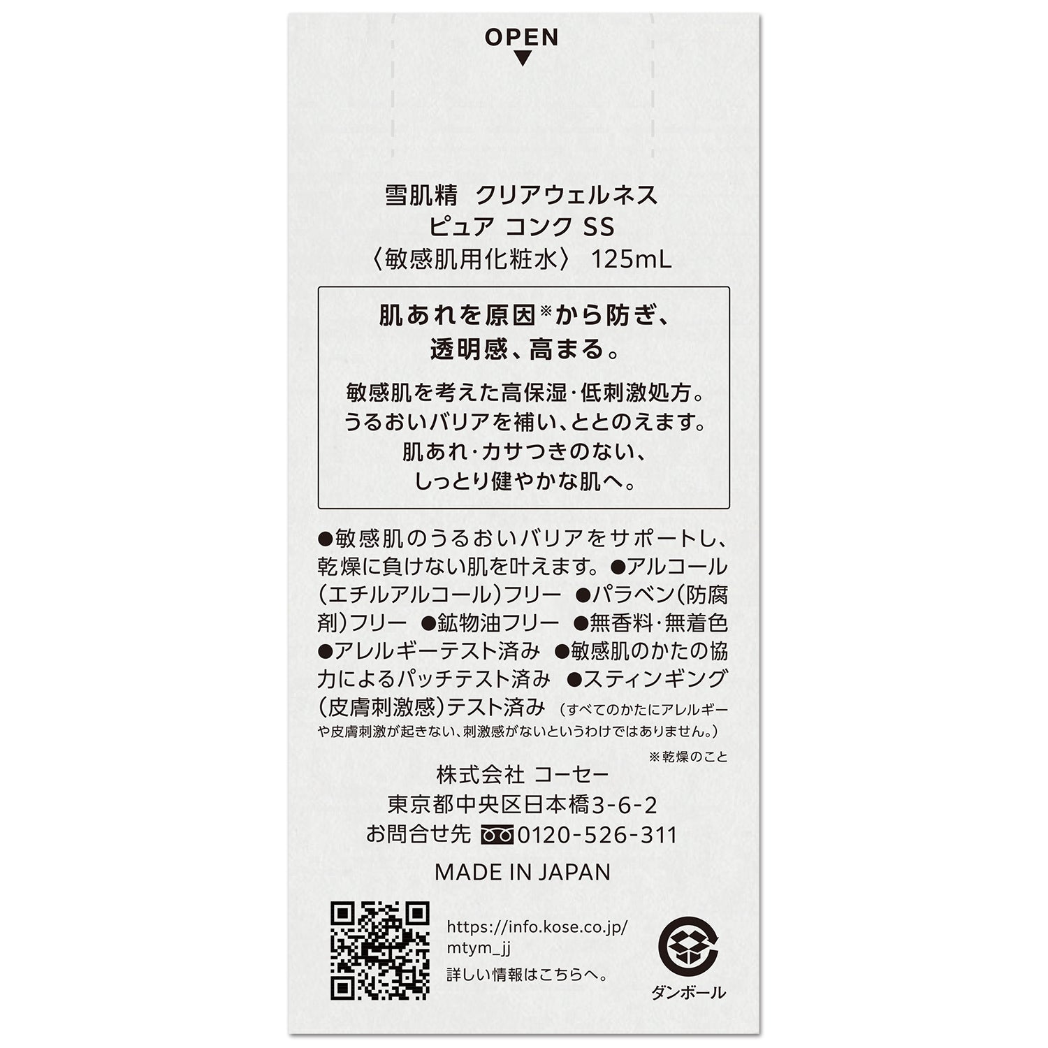 雪肌精 クリアウェルネス ピュア コンク SS (敏感肌用化粧水) 125mL : 敏感肌用高保湿化粧水。