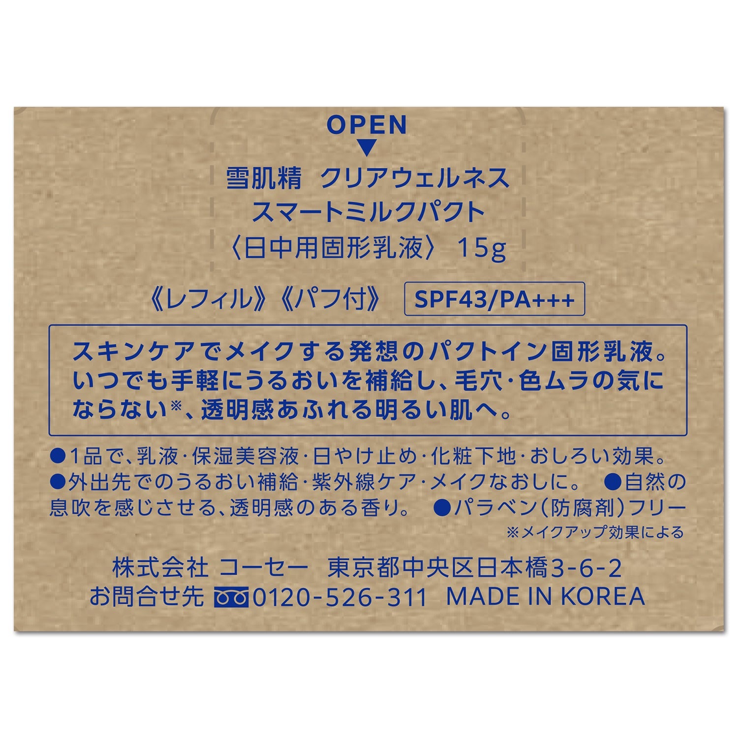雪肌精 クリアウェルネス スマートミルクパクト 15g