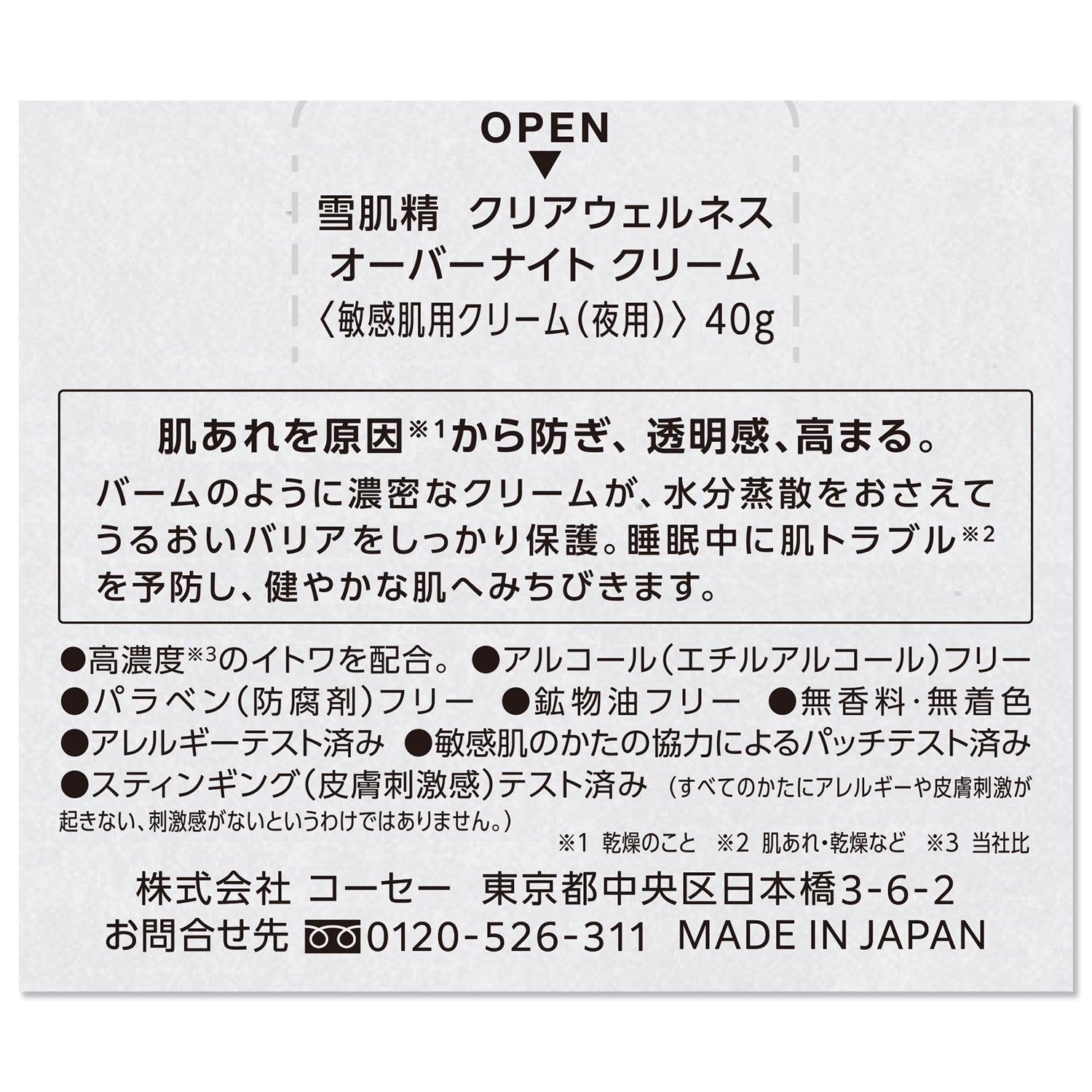 雪肌精 クリアウェルネス オーバーナイト クリーム (敏感肌用クリーム (夜用) ) 40g : 寝ながらケアして翌朝ぷるん。