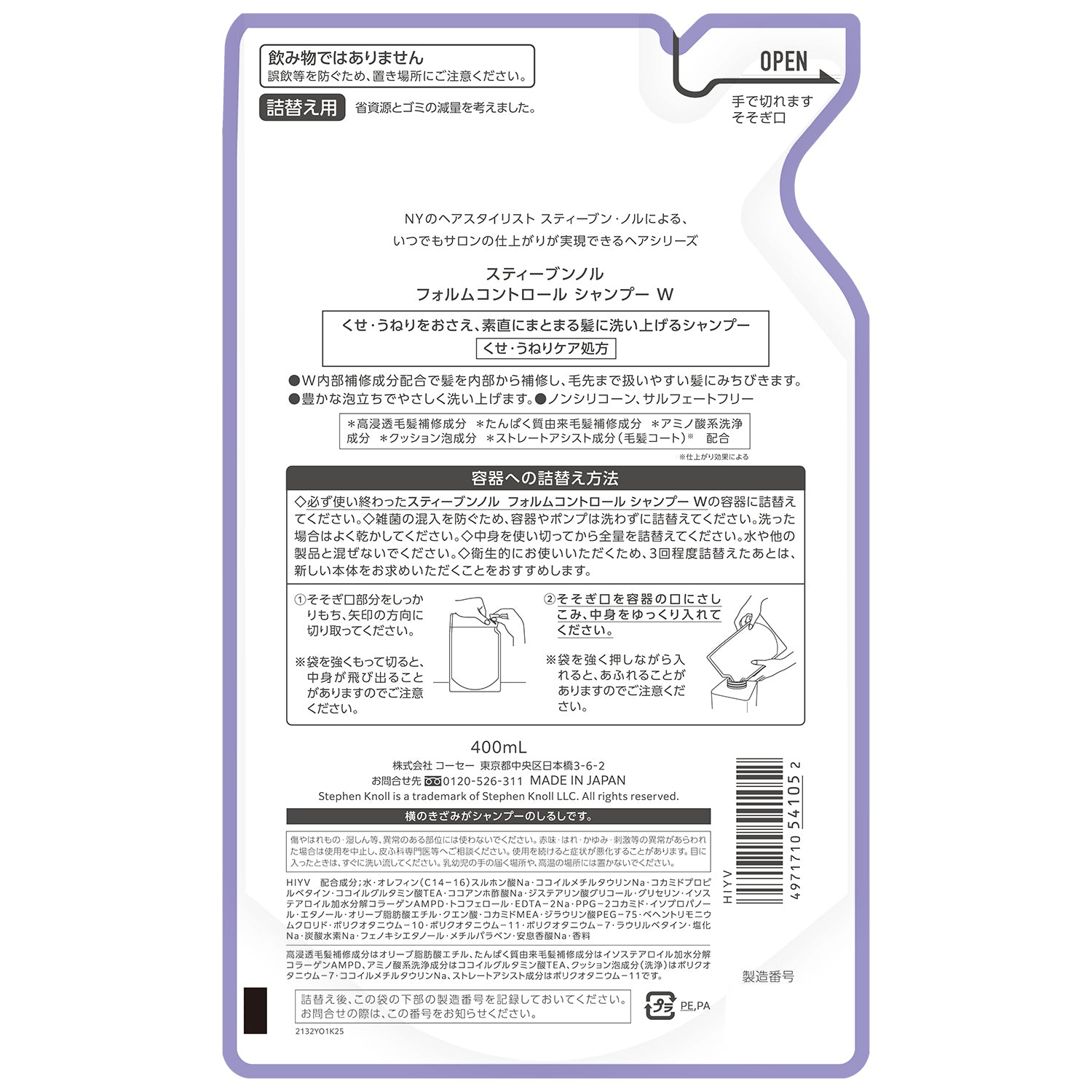 必ず使い終わったスティーブンノル フォルムコントロール シャンプー W の容器に詰替えてください。