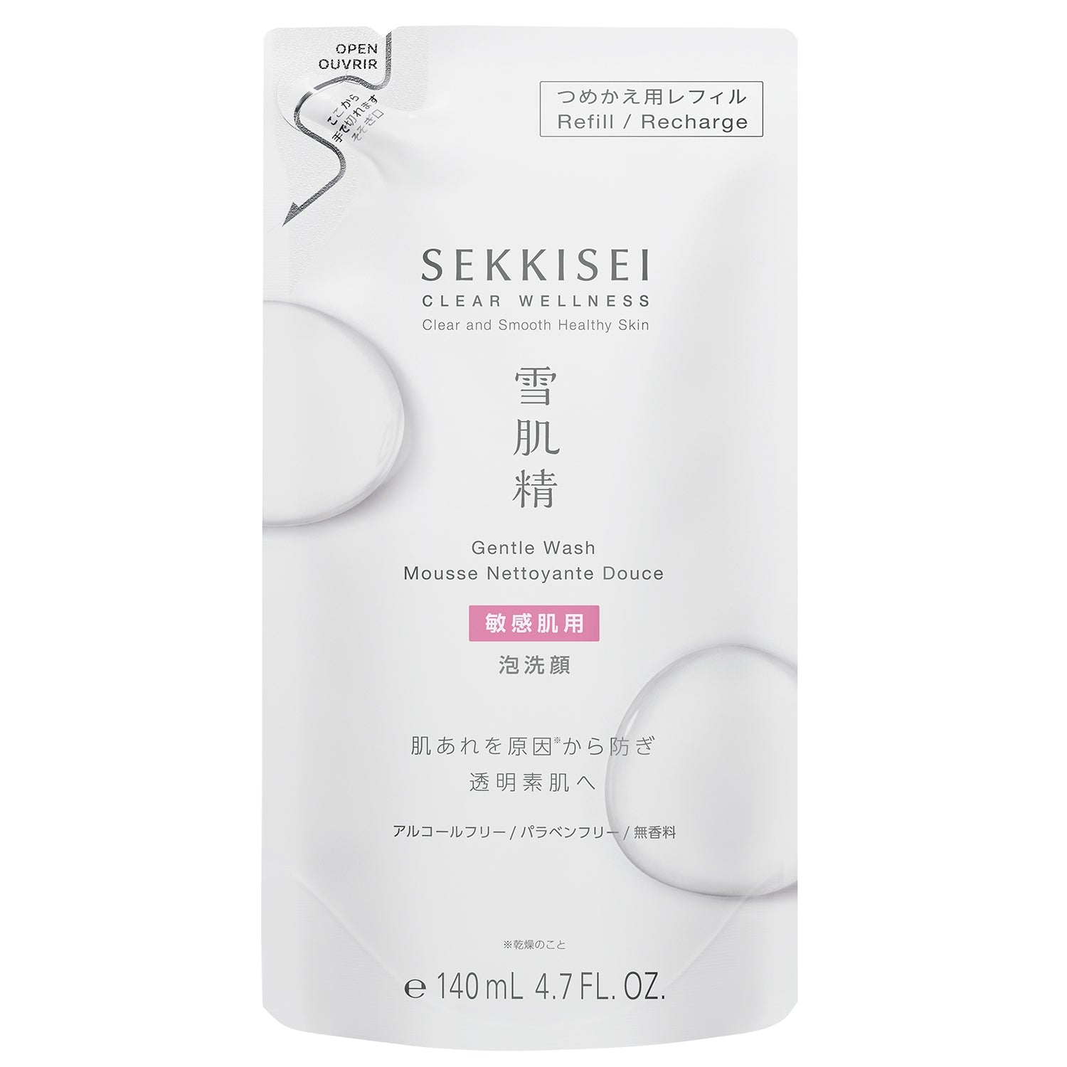 雪肌精 クリアウェルネス ジェントル ウォッシュ (敏感肌用泡洗顔) つめかえ用レフィル 140mL : 肌あれを原因 (乾燥のこと) から防ぎ透明素肌へ。