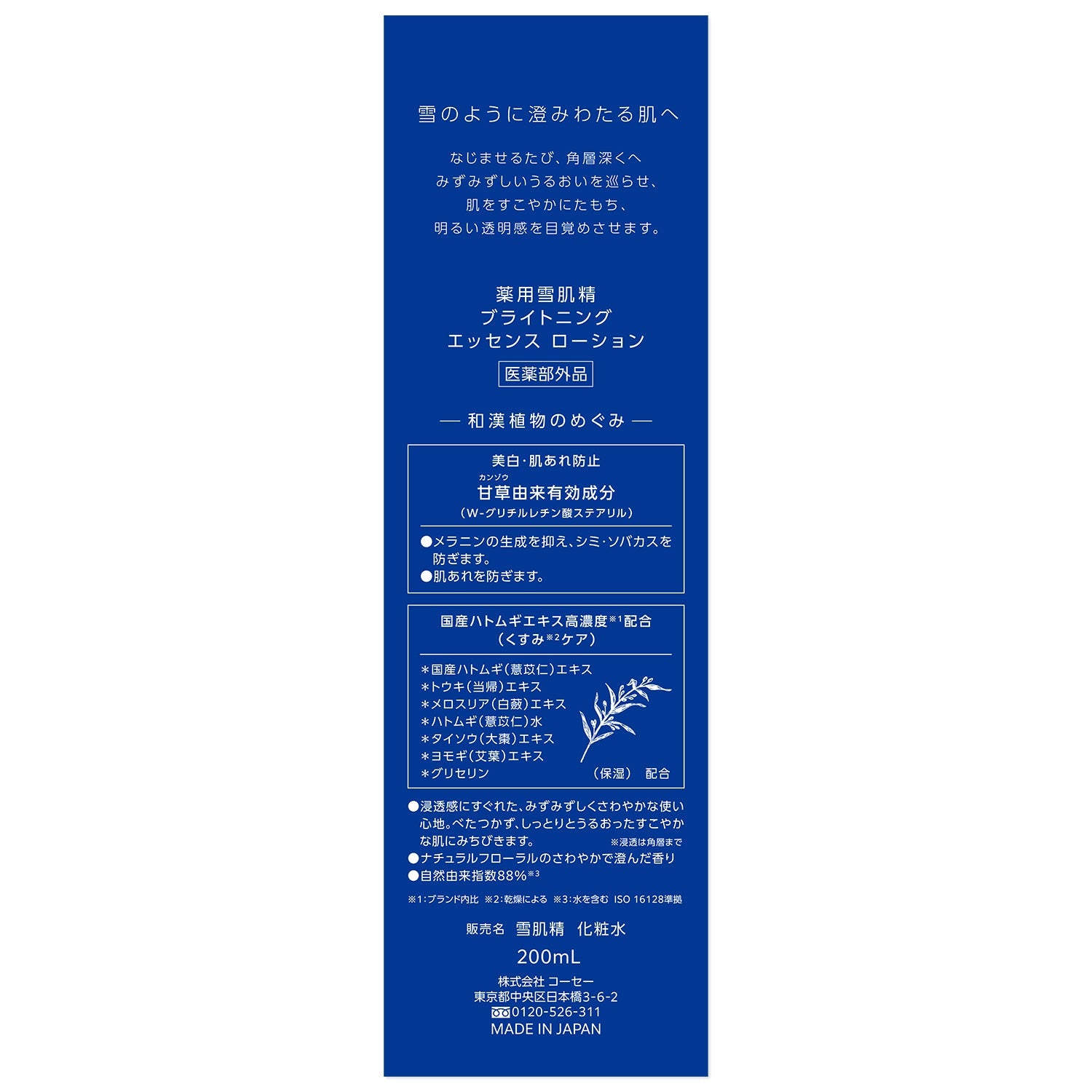 薬用雪肌精 ブライトニング エッセンス ローション (医薬部外品) 200mL : 薬用美白化粧水。