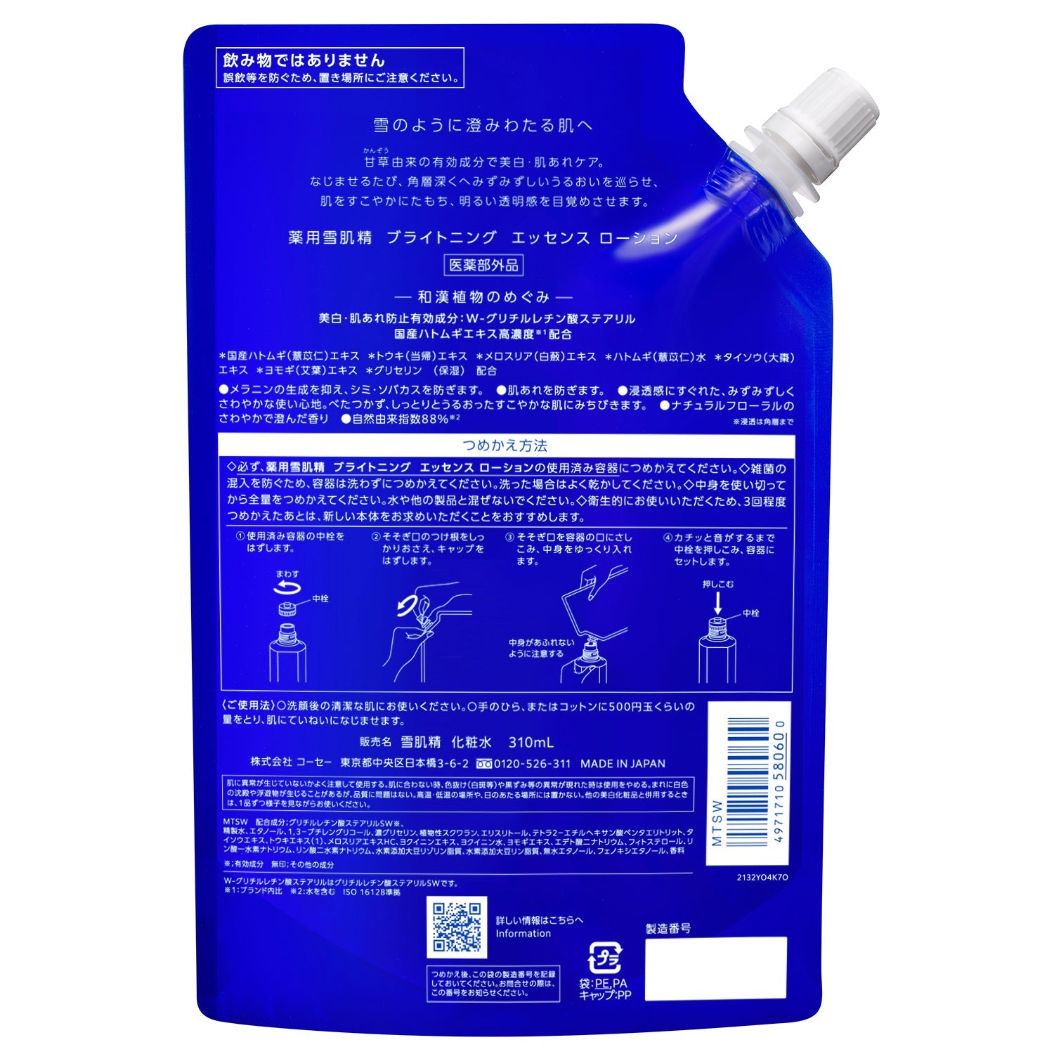 薬用雪肌精 ブライトニング エッセンス ローション (医薬部外品) (つめかえ用レフィル) 310mL : 薬用美白化粧水。