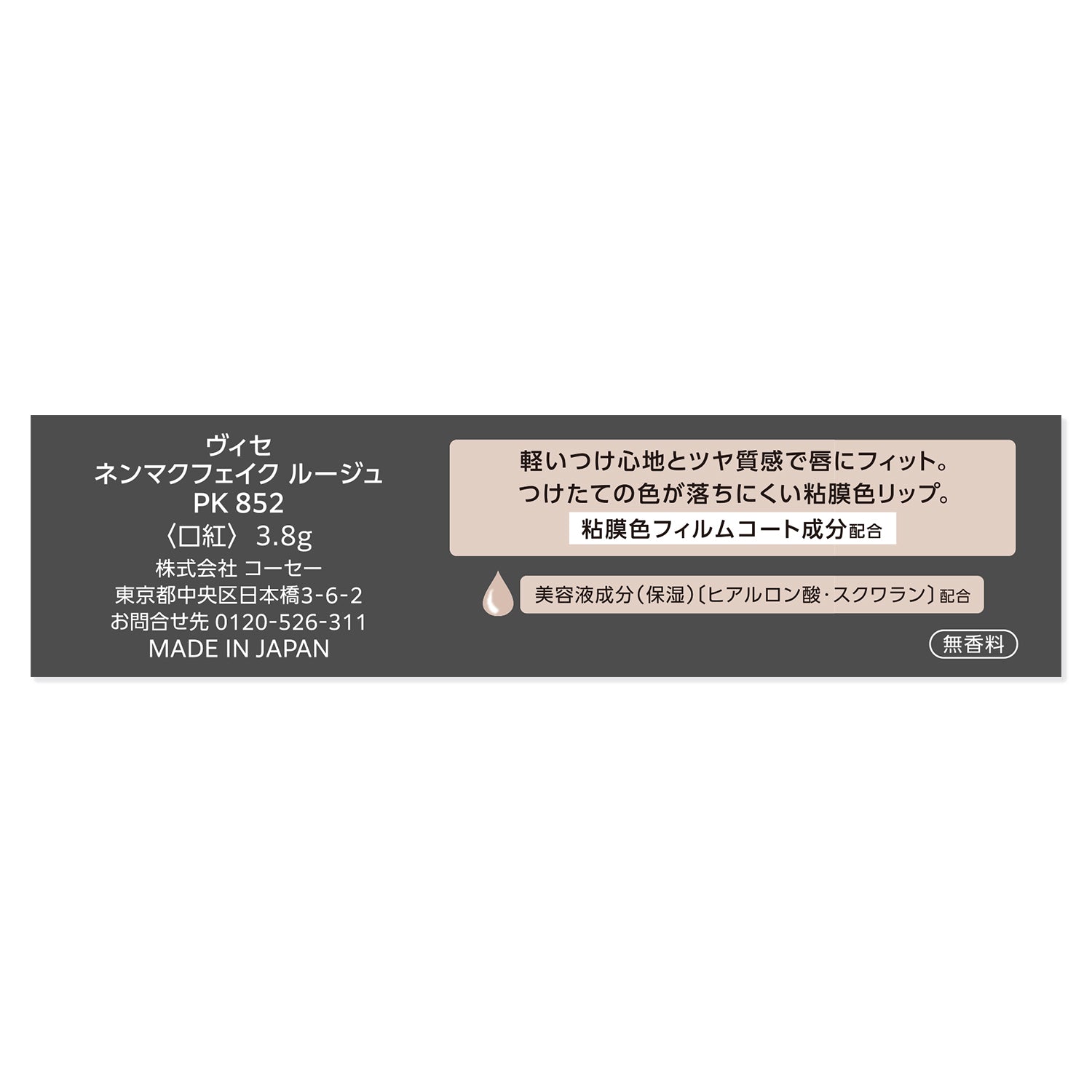 ヴィセ ネンマクフェイク ルージュ PK852 (口紅) 3.8g : 落ちにくい、色気続く粘膜色ルージュ。